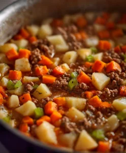 - Return the cooked beef to the pot. Bring to a gentle boil, then reduce heat and simmer 10–12 minutes until potatoes are tender. 🍲