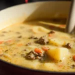 This warm, comforting cheeseburger soup brings all the flavors of a juicy backyard burger into one creamy, cozy bowl. With tender potatoes, seasoned ground beef, melty cheddar, and a rich broth, it’s the ultimate cold-weather dinner that feels like comfort in every spoonful. It’s easy to make, family-friendly, and delicious alongside sandwiches or warm crusty bread. Get ready for a satisfying meal that tastes like a cheeseburger hugged a bowl of soup. 🍔🥣✨