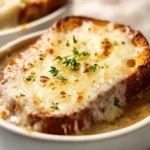 This cozy French onion soup brings together deeply caramelized onions, rich savory broth, and a melted cheese topping that turns every bowl into pure comfort. Slow-cooked onions transform into a glossy, golden base that fills the kitchen with irresistible aroma. The toasted bread sinks gently into the broth, soaking up all the goodness while the cheese melts into a bubbly, golden crust. Perfect for date nights, chilly evenings, or anytime you crave something warm and soul-hugging, this homemade classic feels elegant yet simple — a beautiful reminder that comfort often comes from the humblest ingredients. 🧅✨